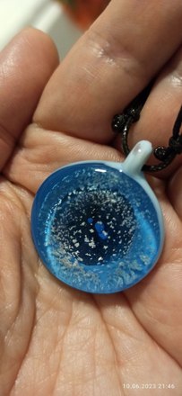 Все работы у них очень интересные, есть даже неожиданные. Но кулона для моей Сони, Анди Света Утренней Звезды, не было. Мы решили заказать и, Форнты, принялись долго и сложно объяснять что-то про форму и цвет, про неровные края и серебро на бледно-голубом. Очень хотелось объяснить так, чтобы получился именно для неё кулон.